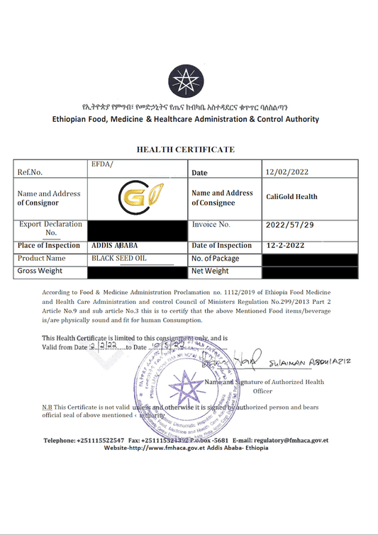 CaliGold Gold Standard Ethiopian Black Seed Oil - 100ml