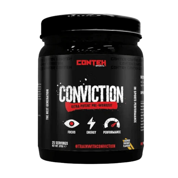 Conteh Sports Conviction is a high stim and focused based pre-workout. Conteh Sports Conviction is ideal for anyone who has long hard training sessions. Conteh use multiple simulants at a high dose to give you that kick you need for your session, as well as patented TeaCrine® which has been shown to improve endurance, energy, focus and mood. They also use AlphaZone® which is a patented version of Alpha-GPC, which improves cognitive function and focus.