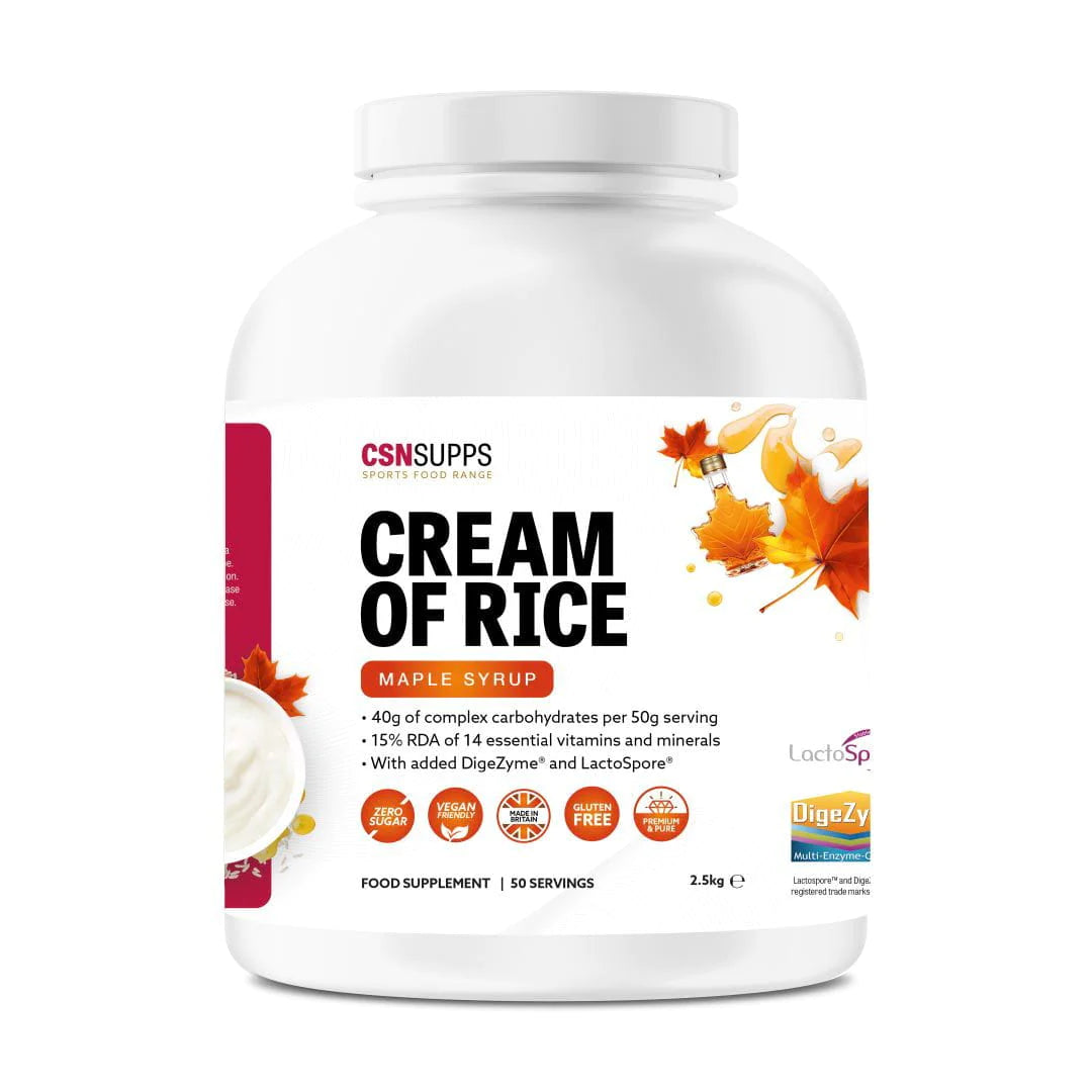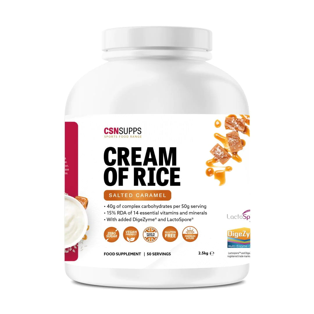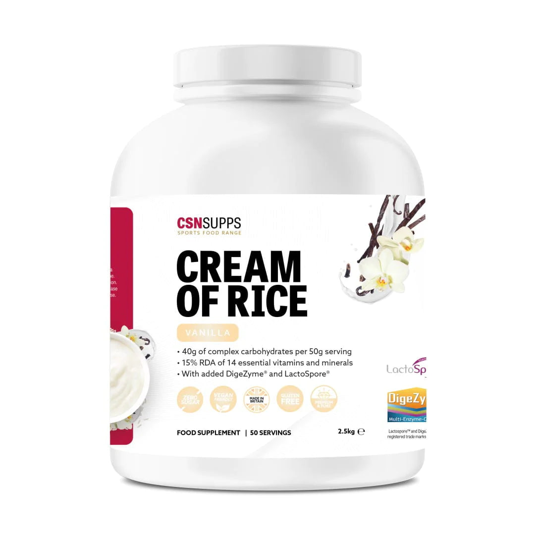Cream of Rice is gluten-free making it ideal for those that have a gluten intolerance, or those following a gluten-free diet. As well as being loaded with complex carbohydrates CSN has added 4 essential vitamins & minerals providing 15% RDA including six individual B vitamins to increase energy levels, antioxidant vitamins A, C and E and zinc and magnesium to support muscle function.