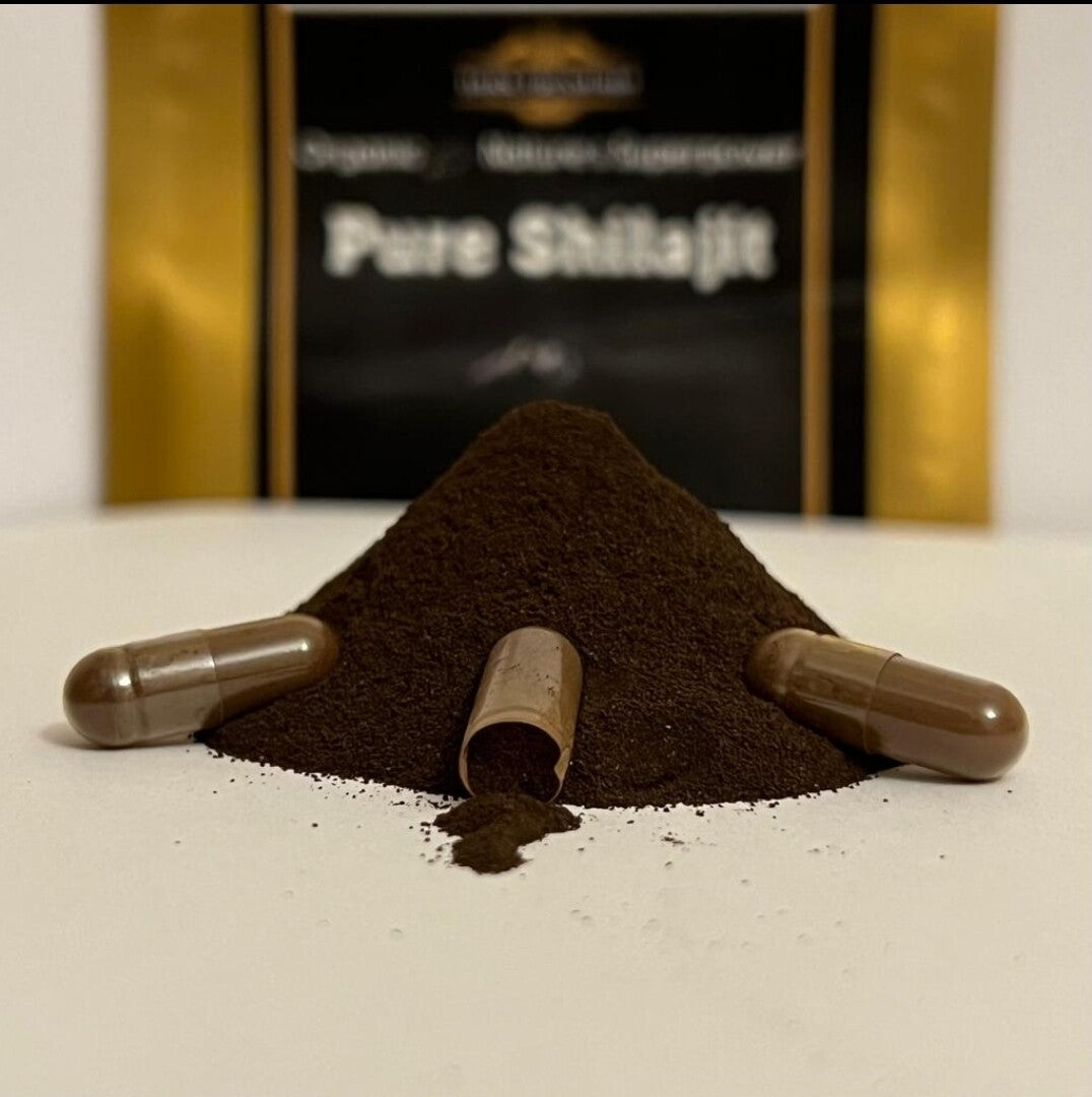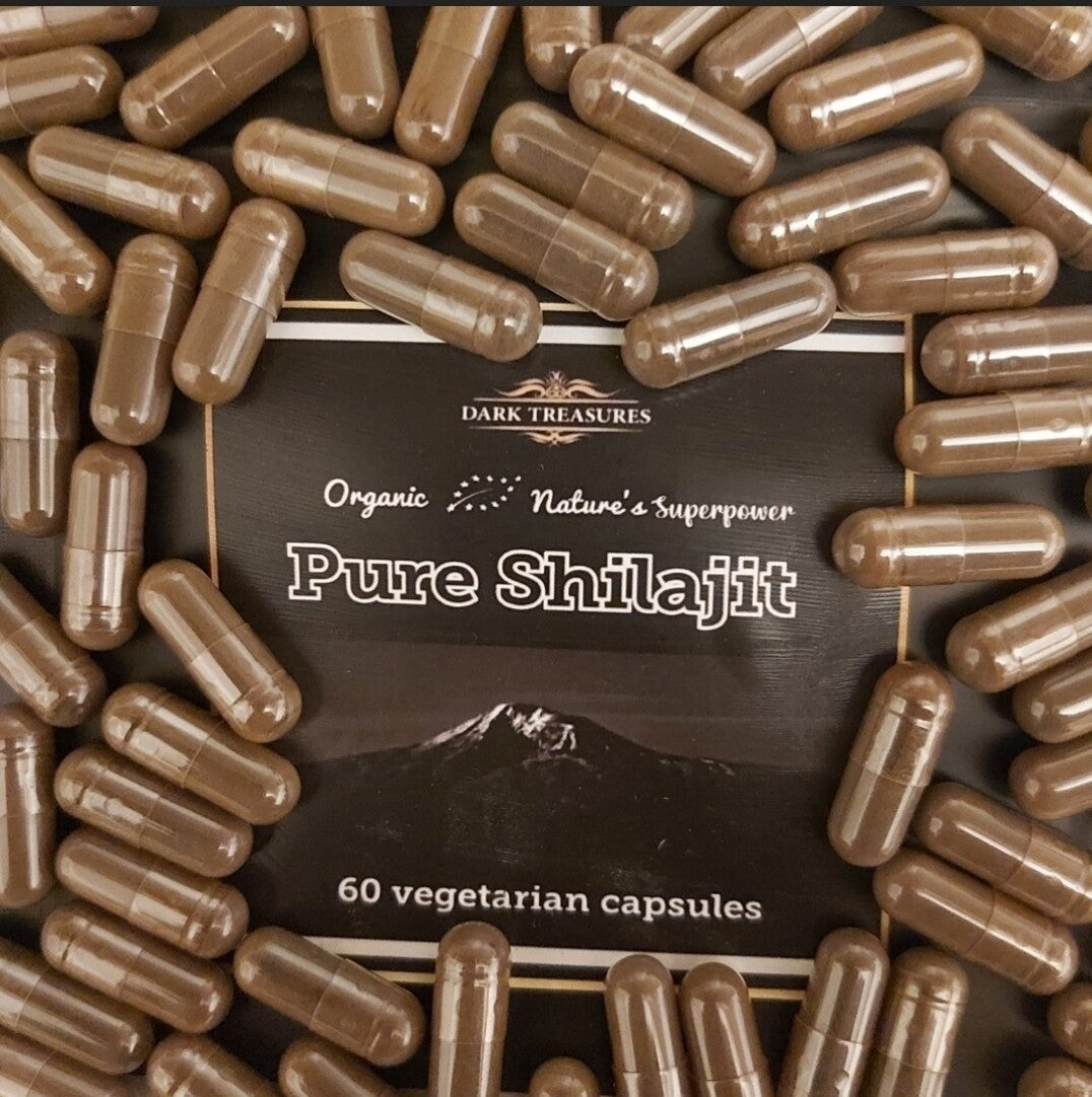 Dark Treasures bringing you Nature's Superpower. Pure Shilajit 60 capsules, a huge 50% fulvic acid.