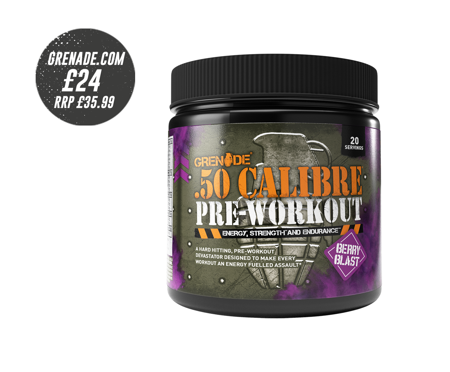 .50 Calibre® is the ultimate pre workout devastator, designed to take your session to the next level. This hard-hitting supplement contains Citrulline Malate, along with beta alanine, caffeine and creatine to increase energy, strength and endurance levels. .50 Calibre will help to reduce tiredness during workouts and increase workout capacity. Available in four flavours, this powerful pre workout guarantees an explosive workout, helping you to push through your plateau and smash your goals!