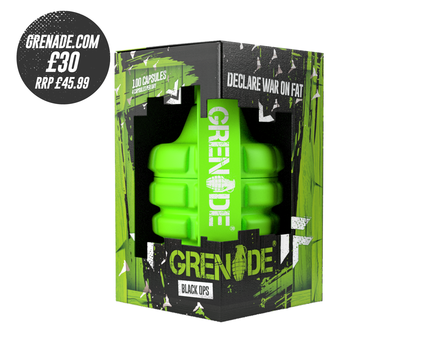 Predominantly aimed at male users, Black Ops® has a shorter duration of action than the original Grenade® Thermo Detonator® making it ideal for focused HIIT (High Intensity Interval Training) sessions and for training later in the afternoon or early evening. Developed in conjunction with elite US Special Ops Forces, Grenade® Black Ops® delivers a precise, controlled level of stimulant effect.