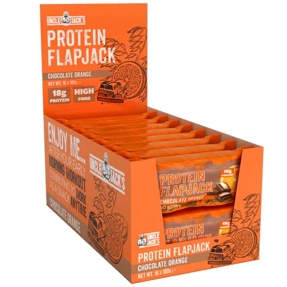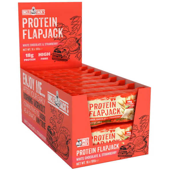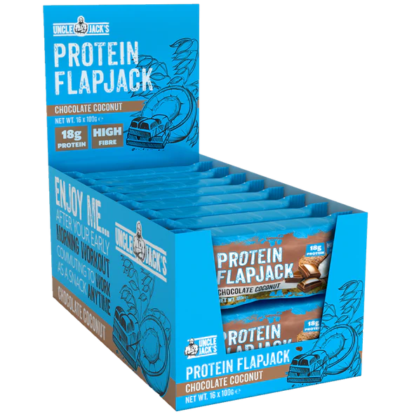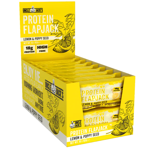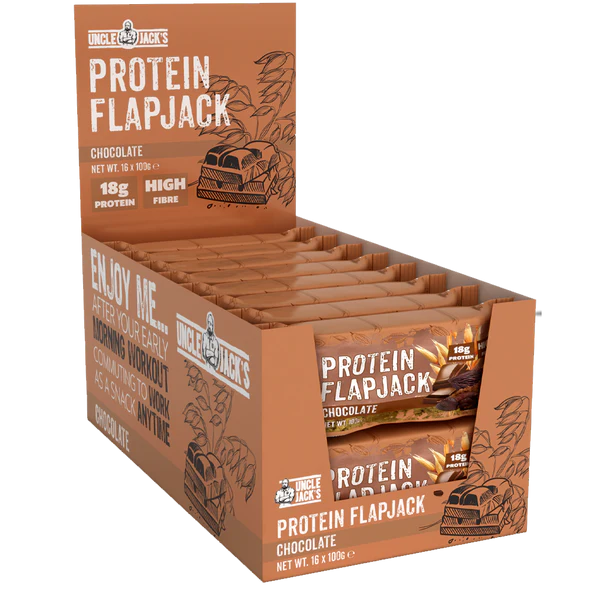 The Uncle Jack's Protein Flapjacks boasts 18g of Protein and over 3g of Fibre.