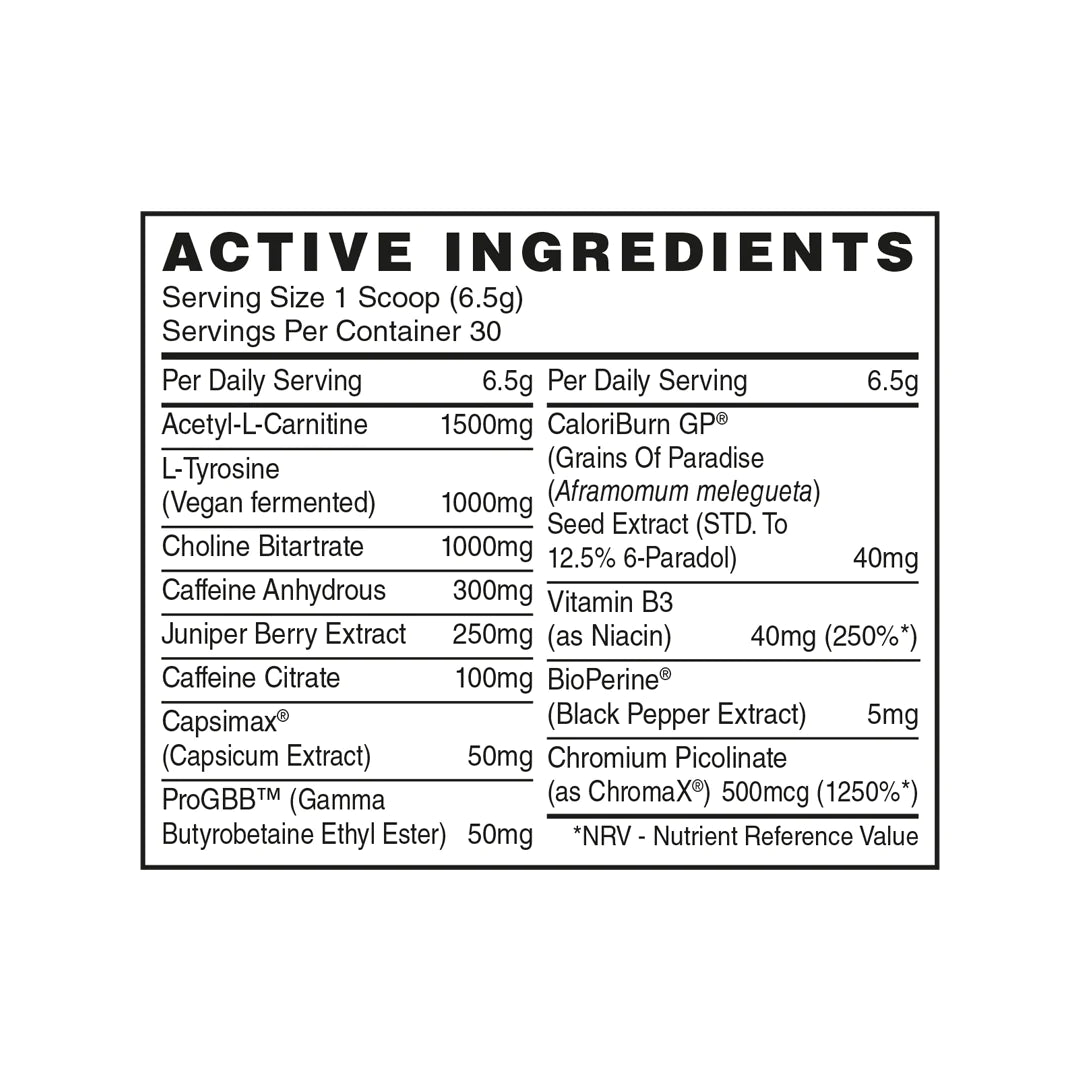 Powered by CaloriBurn®, ProGBB™, Capsimax® , ChromaX® and BioPerine®.